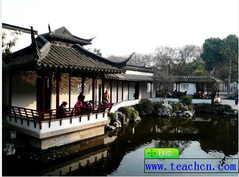 One of the structures in traditional Chinese landscape gardening is the xie, a special form of pavilion. The earliest xie referred to the wood houses built on high terraces, but with the change of taste it became more and more the fashion in later epochs to build the single-storyed xie on the shore of lakes or ponds.